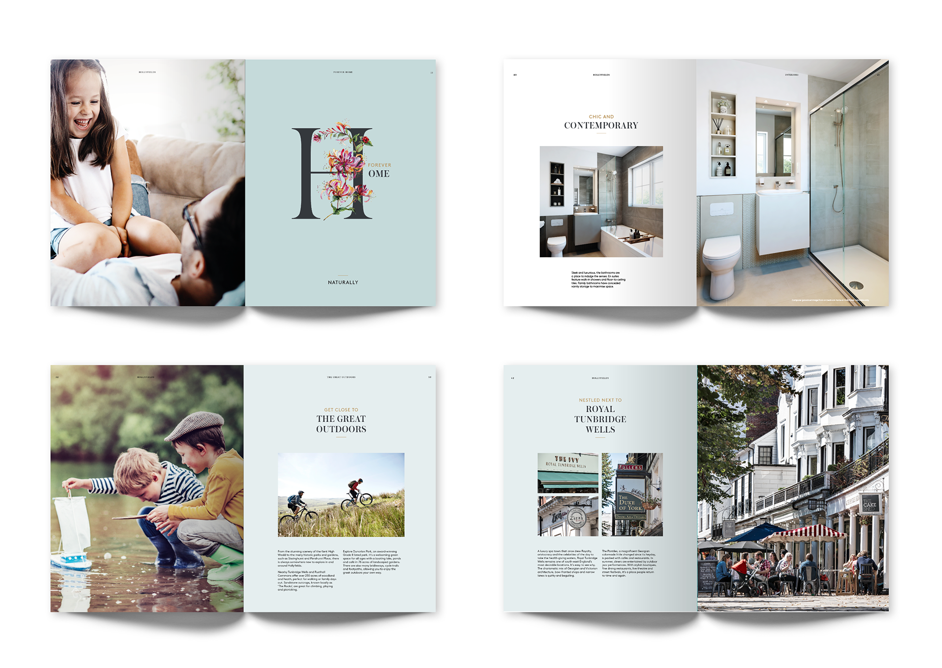 Each house was given it’s own personal identity with a unique name and its own bespoke illustration to inject real personality into the marketing collateral. All these elements came together in a wider graphic language for the development, with holly from the ancient hedgerows as a recurring theme.