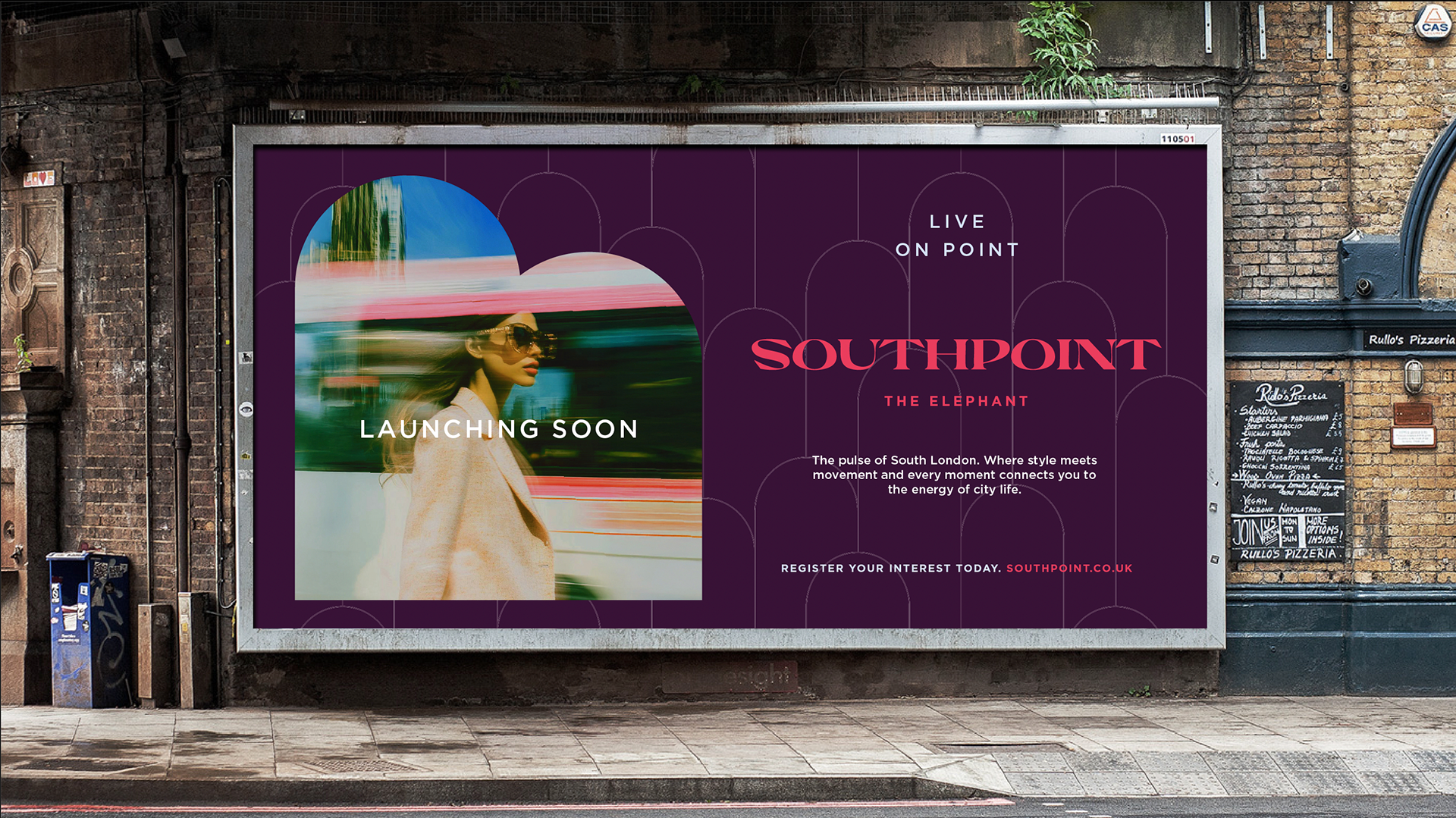 The look and feel is powerful, expressive and distinctly modern, reflecting Southpoint’s confident, sophisticated spirit. The strapline ‘Live on Point’ encapsulates this energy – a life that’s connected, self-assured and perfectly in rhythm with South London’s vibrant heartbeat.